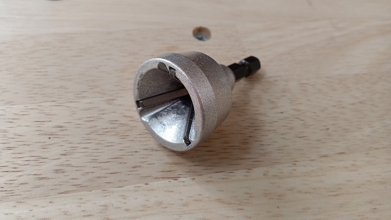 使い方は「ネジ穴にセットして板に押し付ける」だけです。マーキングしたところに穴あけします。