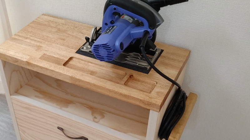 その後。ワゴン収納と一体化した丸ノコ置き台を製作しました。
